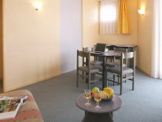 В двух крылах здания (трехэтажном и пятиэтажном) размещено 58 функциональных и уютных номеров, включая 34 двухместные студии, 5 трехместных студий и 19 апартаментов с одной спальней, вмещающих до 4 постояльцев. Все номера оборудованы кондиционерами. В студиях по желанию гостей может содержаться диван-кровать или 2 односпальные кровати. Апартаменты состоят из гостиной с диван-кроватью и спальни с двумя односпальными кроватями. В каждом номере предусмотрена ванная комната с отдельным туалетом (за исключением апартаментов для гостей с ограниченными физическими возможностями), полностью оборудованная кухня с плитой, микроволновой печью, холодильником и посудомоечной машиной, а также телевизор со спутниковыми каналами, прямая телефонная связь, фен и персональный сейф. Гостям предоставляется постельное белье. Раз в неделю производится бесплатная уборка и смена постельного белья. Желающим предлагается дополнительное платное обслуживание номеров.