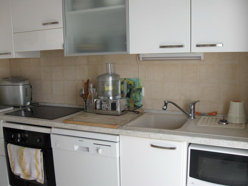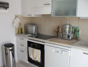 Кухня полностью оборудована, есть посудомоечная машина, микроволновая печь, плита, холодильник.