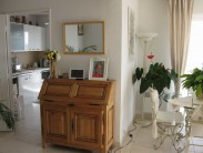 Гостиная соединена с террасой, откуда открывается великолепный вид на море. В гостиной плоский телевизор, DVD, hifi, спутниковой телевидение, на террасе стол, стулья, BBQ.