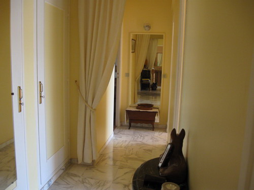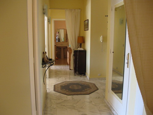 Апартамент площадью 75м2 и террасой 25м2 состоит из 2 спален и салона. В первой спальне двухместная кровать 140 см, во второй 2 одноместные кровати. Кухня полностью оборудована, есть посудомоечная машина, стиральная машина, плита, микроволновая печь. Ванная комната с ванной и туалетом + душевая с туалетом.