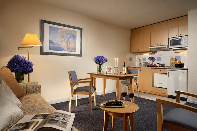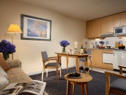 На 8 этажах отеля размещено 168 апартаментов, включая 129 студий на 1-2 человек и 38 апартаментов с одной спальней, вмещающих до 4 постояльцев. Окна выходят на улицу или близлежащий торговый комплекс со стеклянной крышей. В студиях предусмотрены диваны или раздвижные кровати. Во всех студиях и апартаментах предусмотрены кондиционеры, ванная комната, полностью оборудованная кухня с плитой, микроволновой печью, холодильником и посудомоечной машиной, а также рабочий стол, телевизор со спутниковыми каналами, прямая телефонная линия и Hi-Fi система.