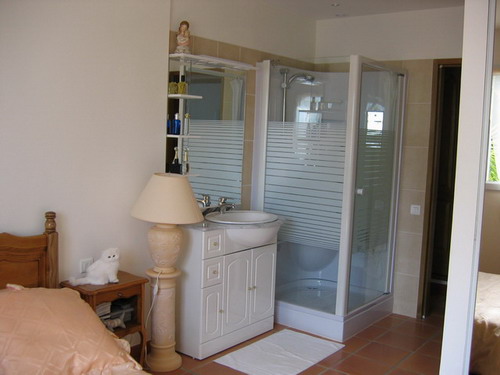 1 спальня с двухместной кроватью 140 cm с душевой кабиной в комнате, есть телевизор, а также доп.кровать на 1 человека