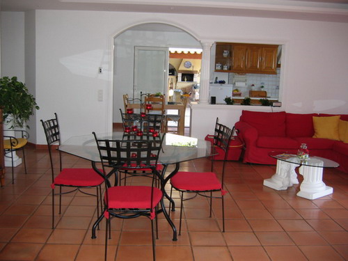 Просторный салон/гостиная выходит на террасу, а также к бассейну. Есть камин, телевизор (TNT, Canal+).